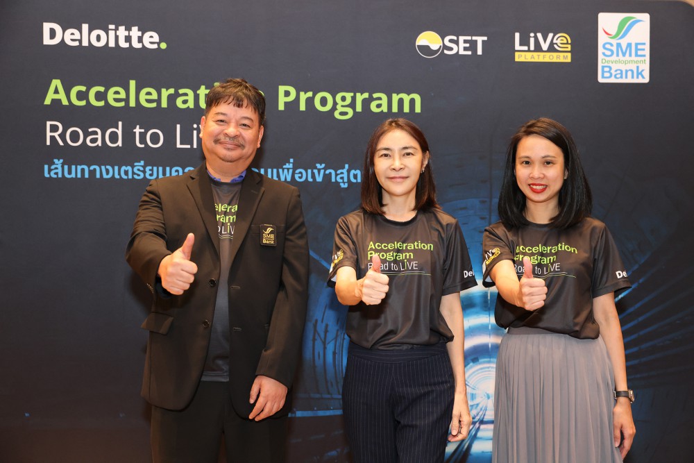 ทั้งนี้จากความร่วมมือระหว่าง SME D Bank กับ บริษัท ดีลอยท์ ทู้ช โธมัทสุ ไชยยศ สอบบัญชี จำกัด หรือ “ดีลอยท์ ไทยแลนด์” ภายใต้การสนับสนุนจากตลาดหลักทรัพย์แห่งประเทศไทย (ตลท.) หรือ SET และ LiVE Platform ที่จะคัดเลือกผู้ประกอบการ SMEs และ Start up ที่มีศักยภาพและต้องการเติบโตในตลาดทุนไทย มาเข้าร่วมโครงการ เพื่อจะได้รับการสนับสนุนพัฒนาธุรกิจ คำแนะนำจากผู้เชี่ยวชาญหลากหลายสาขา เปิดโอกาสต่อยอดสร้างเครือข่ายธุรกิจ และสามารถก้าวสู่ตลาดทุนไทยได้ต่อไปในอนาคต จัด ณ โรงแรมคอนราด กรุงเทพ เมื่อเร็วๆ นี้