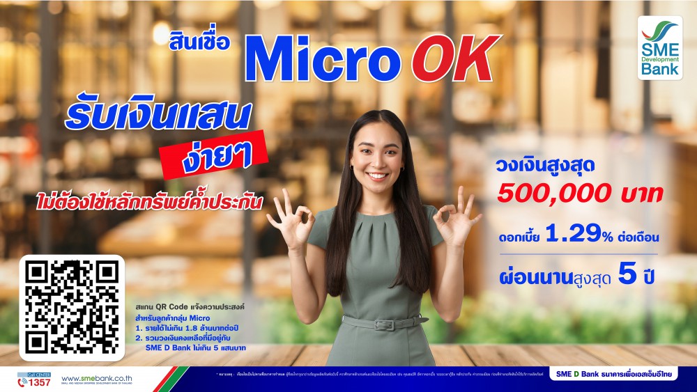 SME D Bank อัดฉีด 500 ล้านบาท เปิดตัวสินเชื่อใหม่ ‘Micro OK’ ติดเครื่อง SMEsจิ๋วแต่แจ๋ว กู้ง่ายรับเงินแสนทันใจ ไม่ต้องใช้หลักทรัพย์ค้ำประกัน