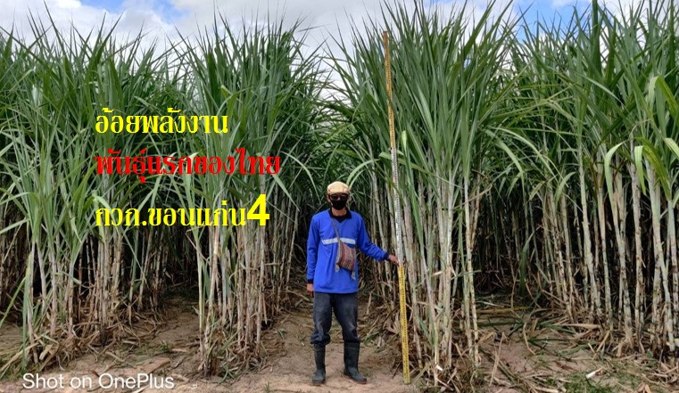 จาการวิจัยและปรับปรุงพันธุ์อ้ อยตั้งแต่ปี 2540 -2565 ทำให้ได้อ้อยพันธุ์ใหม่ใช้ชื่ อพันธุ์ว่า ”กวก. ขอนแก่น 4” เป็นลูกผสมข้ามชนิดระหว่างอ้ อยและอ้อยป่า (Saccharum spotaneum) เกิดจากการผสมพันธุ์ระหว่างอ้ อยพันธุ์แม่ 94-2-128 ที่มีผลผลิตและความหวานสูง และอ้อยพันธุ์พ่อ 03-4-331 ที่มีผลผลิตสูง และปรับตัวกับสภาพแวดล้อมได้กว้ าง ประเมินผลผลิตในการเปรียบเที ยบเบื้องต้น เปรียบเทียบมาตรฐาน การเปรียบเทียบในไร่เกษตรกร และการทดสอบในไร่เกษตรกร ในปี 2553-2564 ทดสอบและศึกษาศักยภาพการผลิ ตพลังงานชีวภาพในปี 2555-2557 ลักษณะทางพฤษศาสตร์ ทรงกอค่อนข้างตั้งตรง ปล้องเรียงตัวค่อนข้างตรง ปล้องทรงกระบอก ใบกว้างปานกลางและไม่มีขนที่ กาบใบ