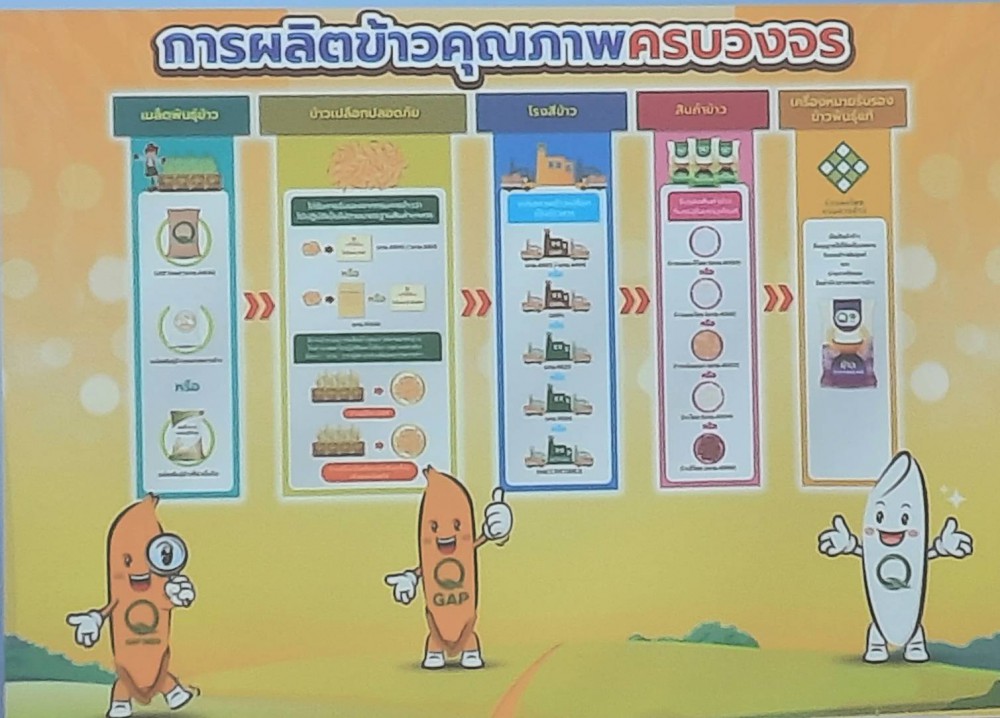 ทั้งนี้แนวทางการยกระดับคุณภาพข้าว จะมุ่งเน้นกระบวนการผลิตที่มีการนำเมล็ดข้าวพันธุ์ดีที่ได้รับการรับรองมาตรฐาน GAP Seed มาใช้ เพื่อผลิตข้าวเปลือกคุณภาพดีที่ผ่านมาตรฐาน GAP สำหรับการแปรสภาพเป็นข้าวสารคุณภาพผ่านโรงสีหรือโณงปรับปรุงสภาพข้าวที่ได้รับมาตรฐาน GMP หรือมาตรฐานอื่นที่เทียบเท่า เพื่อให้ได้สินค้าข้าวคุณภาพที่เป็นไปตามมาตรฐานสินค้าข้าว Q