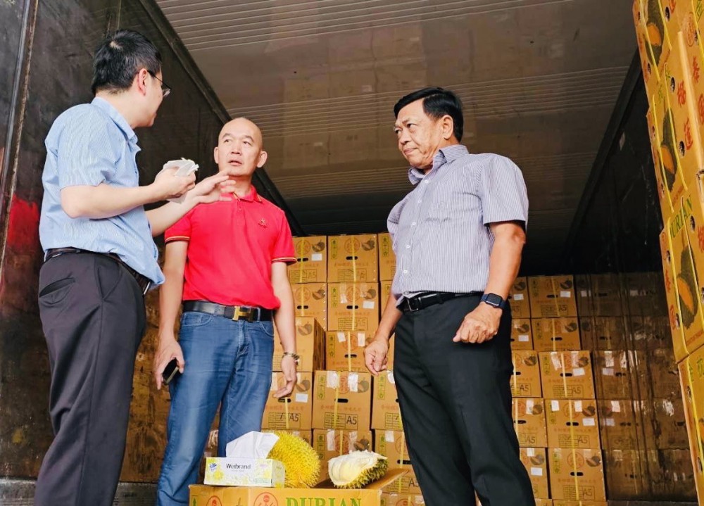 วันที่ 31 สิงหาคม 2566 นายอลงกรณ์ พลบุตร ที่ปรึกษารักษาการรัฐมนตรีว่าการกระทรวงเกษตรและสหกรณ์ ในฐานะคณะกรรมการพัฒนาและบริหารจัดการผลไม้ (ฟรุ้ทบอร์ด) พร้อมด้วย นายเมฆินทร์ เอี่ยมสะอาด และนายณฐกร สุวรรณธาดา คณะทำงานที่ปรึกษารัฐมนตรีเกษตรฯ นายปรัตถกร แท่นมณี กงสุล (ฝ่ายเกษตร) ประจําสถานกงสุลใหญ่ ณ นครกว่างโจว ลงพื้นที่ตรวจทุเรียน ณ ตลาดเชียงหนาน เมืองกว่างโจว เพื่อติดตามกรณีเกิดปัญหาหนอนเจาะทุเรียนกระทบการส่งออกทุเรียนไทย จากนั้นได้ร่วมประชุมหารือกับผู้ประกอบการค้าของจีนและเจ้าหน้าที่ที่เกี่ยวข้อง