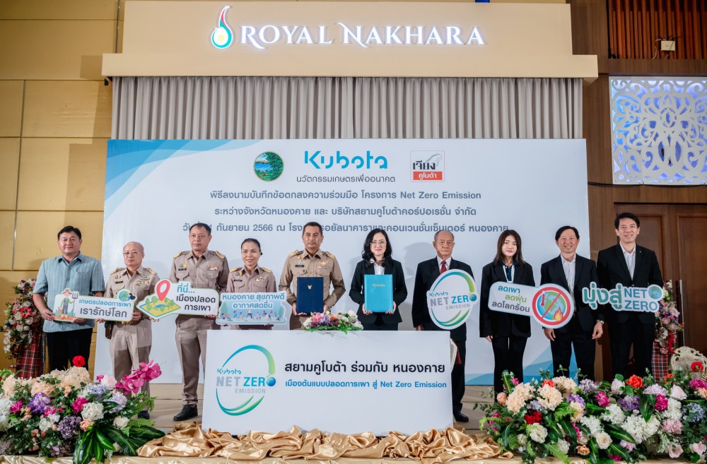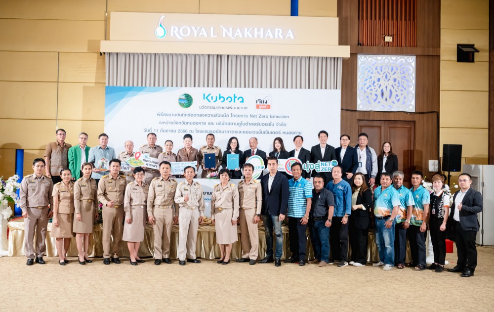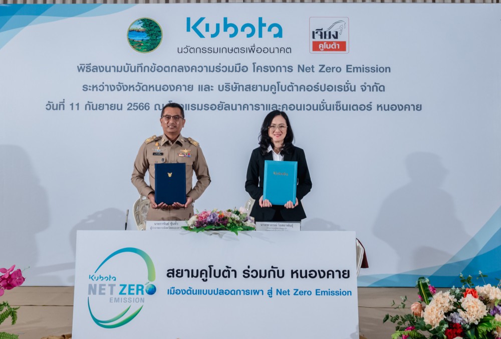 บริษัทสยามคูโบต้าฯ เดินหน้าแผน KUBOTA NET ZERO EMISSION มุ่งมั่นสร้างโลกเกษตรที่ยั่งยืน ขยายองค์ความรู้เกษตรปลอดการเผา สู่นโยบายลดการปล่อยก๊าซเรือนกระจกในภาคการเกษตรสุทธิเป็นศูนย์ จับมือหน่วยงานภาครัฐและเอกชนของจังหวัดหนองคาย ลงนามบันทึกข้อตกลงความร่วมมือฯ “หนองคาย เมืองต้นแบบปลอดการเผาสู่ Net Zero Emission” เป็นจังหวัดที่ 10 ดึงองค์ความรู้ KUBOTA (Agri) Solutions เกษตรครบวงจร แก้ปัญหามลพิษจากฝุ่นละอองในภาคการเกษตร ตลอดจนบริหารจัดการวัสดุเหลือใช้ทางการเกษตร