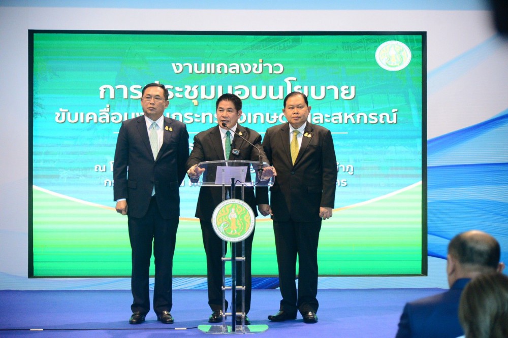 วันที่13 กันยายน 2566 ร้อยเอก ธรรมนัส พรหมเผ่า รัฐมนตรีว่าการกระทรวงเกษตรและสหกรณ์ พร้อมด้วย นายไชยา พรหมา รัฐมนตรีช่วยว่าการกระทรวงเกษตรและสหกรณ์ และนายอนุชา นาคาศัย รัฐมนตรีช่วยว่าการกระทรวงเกษตรและสหกรณ์ ร่วมมอบนโยบายขับเคลื่อนงานกระทรวงเกษตรและสหกรณ์ โดยมีนายประยูร อินสกุล ปลัดกระทรวงเกษตรและสหกรณ์ กล่าวรายงาน มีคณะผู้บริหารระดับสูงทุกหน่วยงานในสังกัดกระทรวงเกษตรและสหกรณ์เข้าร่วม ณ ห้องประชุมธารทิพย์ 01 ชั้น 4 อาคาร 99 ปี หม่อมหลวงชูชาติ กำภู กรมชลประทานสามเสน พร้อมนี้ ได้เปิดการประชุมผ่านระบบการประชุมทางไกลออนไลน์ Application Zoom และทาง Facebook Live กระทรวงเกษตรและสหกรณ์ เพื่อให้เจ้าหน้าที่กระทรวงเกษตรและสหกรณ์และทุกหน่วยงานทั้งส่วนกลาง ส่วนภูมิภาค และต่างประเทศ รวมกว่า 7,300 คน ตลอดจนสื่อมวลชนรับฟังอย่างทั่วถึง