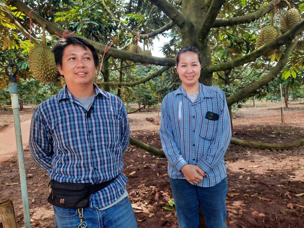 “เมื่อ 7 ปีก่อนที่พบพระเริ่มปลูกทะเรียน ตอนนั้นราคาไม่ค่อยดีเท่าไร แต่ก็รายได้ดีกว่าปลูกกุหลาบ ผมจึงหันมาทุเรียนบ้าง ต่อมาทุเรียนราคาดีขึ้นเรื่อยๆ ผมขยายพื้นที่ปลูก 100 ไร่ เป็นหมอนทอง และมูซังคิงบ้าง ปีที่แล้วได้ 30 ตัน ขายราคา กกละ 120 บาท พบว่าวันนี้ทุเรียนสร้างรายได้มากที่สุด” เรวัต กล่าว (รายละเอียดในคริบ)