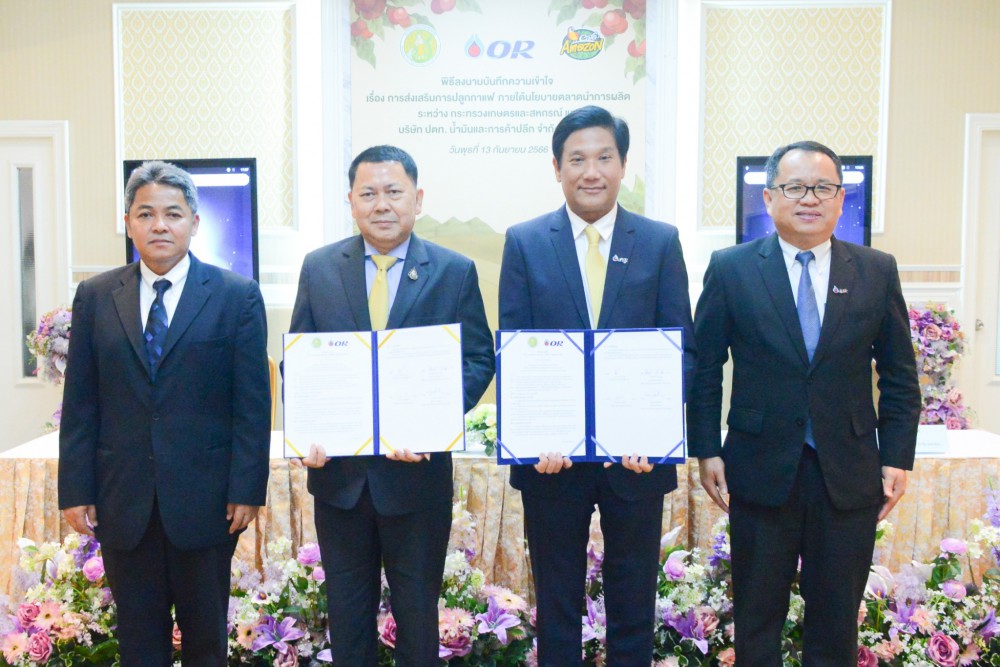 กระทรวงเกษตรฯ จับมือ บริษัท ปตท. น้ำมันและการค้าปลีก ลงนาม MOU ส่งเสริมการปลูกกาแฟภายใต้นโยบาย “ตลาดนำ นวัตกรรมเสริม เพิ่มรายได้” หวังขยายพื้นที่การปลูกกาแฟให้เกษตรกรมีรายได้เพิ่มขึ้นจากการปลูกกาแฟอย่างยั่งยืน แถมสามารถช่วยลดปัญหาการตัดไม้ทำลายป่า และลดปัญหาสิ่งแวดล้อมด้วย