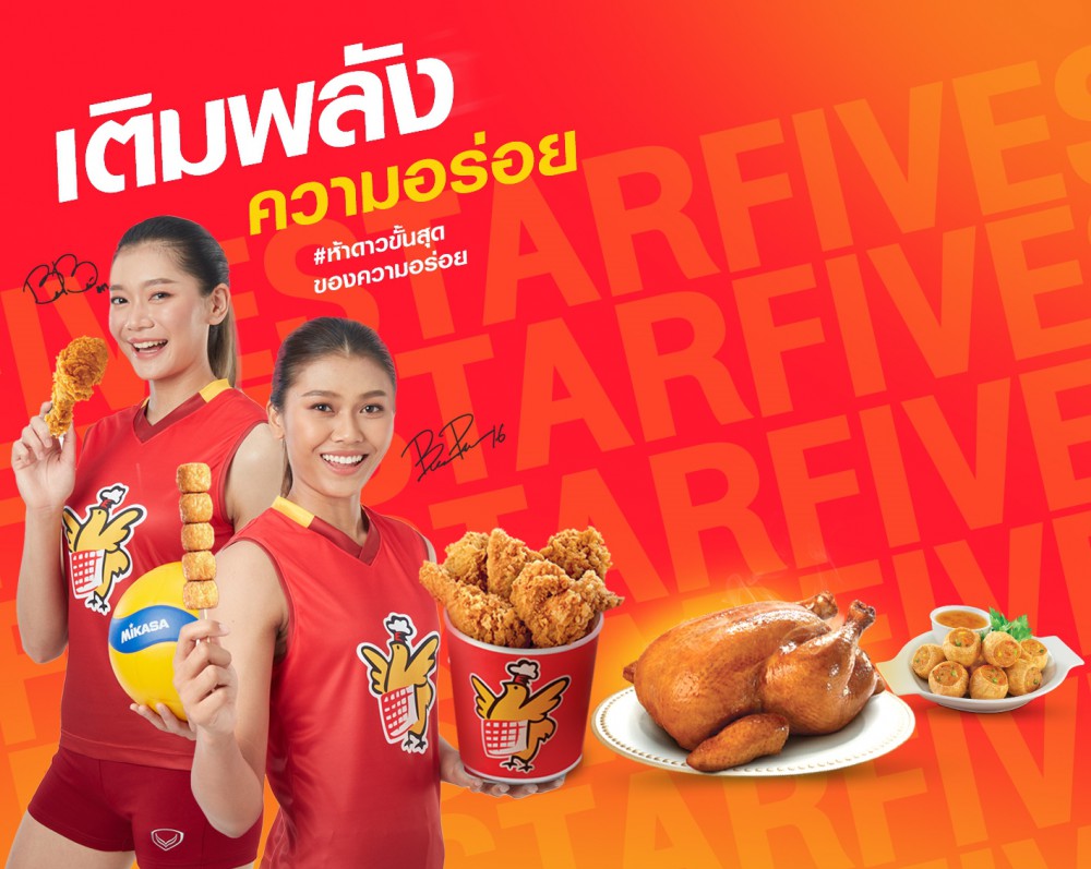 นายสุนทร จักษุกรรฐ์ กรรมการผู้จัดการธุรกิจห้าดาว บริษัท ซีพีเอฟ เรสเทอรองท์ แอนด์ ฟู้ดเชน จำกัด ในเคือ บริษัท เจริญโภคภัณฑ์อาหาร จำกัด (มหาชน) หรือ หรือ ซีพีเอฟ เปิดเผยว่า ห้าดาว เป็นธุรกิจแฟรนไชส์ที่อยู่คู่กับคนไทยมาอย่างยาวนาน นำเสนอเมนูไก่คุณภาพหลากหลาย รสชาติถูกปาก ในราคาคุ้มค่า พร้อมให้บริการทั่วประเทศ ครั้งนี้เรามีแคมเปญ ‘เติมมื้ออร่อยให้ชีวิตมีพลัง‘ นำเสนอทอดผ่าน 2 พรีเซนเตอร์ นักตบลูกยางสาวขวัญใจแฟนวอลเลย์บอลทีมชาติไทย ที่มาช่วยเติมมื้ออร่อยแก่ทุกคนให้ชีวิตมีพลัง ไม่ว่าจะเป็นหลังซ้อมกีฬาเหนื่อยๆ หรือช่วยเติมพลังในชั่วโมงเร่งด่วนให้สามารถลุยงานหรือกิจกรรมต่อได้