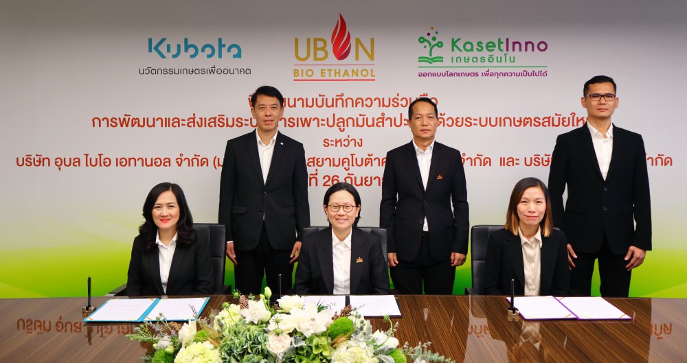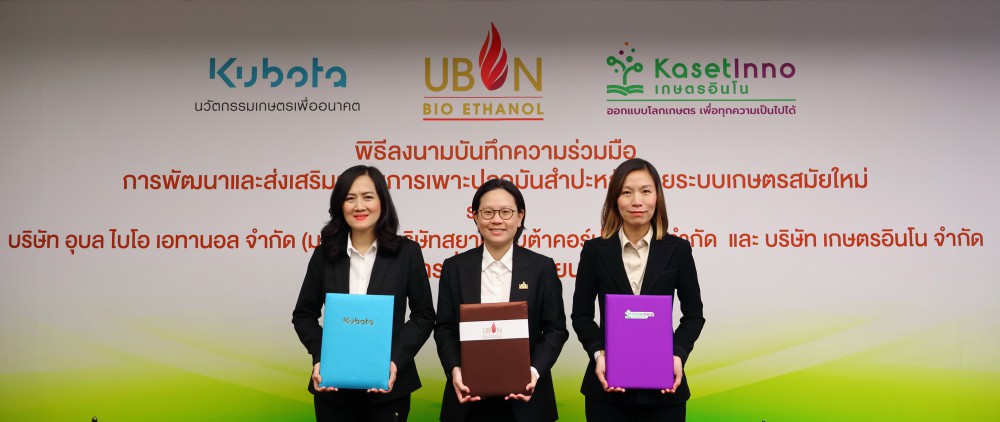 บริษัท อุบล ไบโอ เอทานอล จับมือสยามคูโบต้าและเกษตรอินโน ลงนาม MOU ว่าด้วยการยกระดับนวัตกรรมเทคโนโลยี ส่งเสริมและผลักดันการเพาะปลูกมันสำปะหลังด้วยระบบการจัดการเกษตรสมัยใหม่ และเครื่องจักรกลการเกษตร พร้อมแลกเปลี่ยนและต่อยอดข้อมูลองค์ความรู้ อันจะนำไปสู่การพัฒนาระบบการเพาะปลูกมันสำปะหลังที่มีประสิทธิภาพและประสิทธิผลอย่างเป็นรูปธรรม