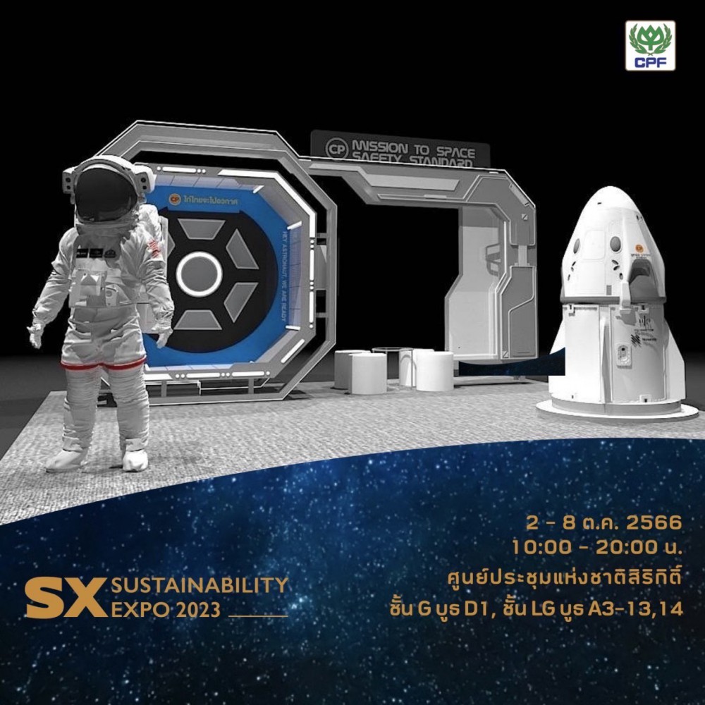 บริษัท เจริญโภคภัณฑ์อาหาร จำกัด (มหาชน) หรือ ซีพีเอฟ โชว์ความสำเร็จยกระดับความปลอดภัยอาหารมาตรฐานอวกาศ ยกบูธ”ไก่ไทยจะไปอวกาศ” ร่วมแสดงในมหกรรมความยั่งยืนที่ใหญ่ที่สุดในอาเซียน SUSTAINABILITY EXPO 2023 (SX2023) ตอกย้ำความเป็นผู้นำนวัตกรรมผลิตอาหารที่ยั่งยืน มุุ่งเน้นโภชนาการที่ดี ดีต่อสุขภาพกายและสุขภาพใจ พร้อมทั้งขนทัพผลิตภัณฑ์รักษ์โลก อาทิ ผลิตภัณฑ์ Meat Zero สินค้าสำหรับเพื่อนรักสี่ขา Jerhigh & Jinny Freeze-Dried ร่วมจัดบูธภายในงาน ภายใต้แนวคิด “สมดุลที่ดี เพื่อโลกที่ดีกว่า” (Good Balance, Better World)