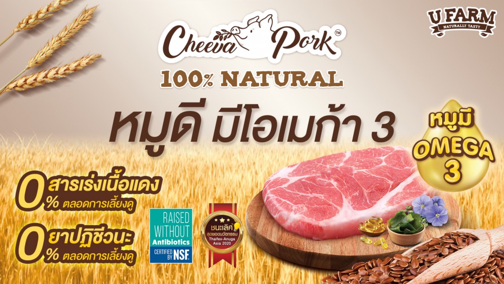 “หมูชีวา เป็นเนื้อหมูคุณภาพพรีเมียม ที่ผ่านการคัดเลือกสายพันธุ์ให้ เหมาะต่อการสะสมของกรดไขมั นโอเมก้า-3 ด้วยการที่หมูกินอาหารที่มีส่ วนผสมของวัตถุดิบที่เป็นแหล่ งของโอเมก้า-3 จากธรรมชาติ ตามแนวคิดที่ว่า “ทานอย่างไรก็เป็นอย่างนั้น” ซึ่งโอเมก้า-3 จะช่วยปรับสมดุล และลดการอักเสบของร่างกาย ทั้งยังช่ วยการทำงานของระบบหลอดเลื อดและหัวใจ ตลอดจนบำรุงสายตา ช่วยลดปัญหาด้านสุขภาพ โดยหมูชีวาได้ผ่านการวิเคราะห์ ตัวอย่างเนื้อจากห้องแล็บที่ได้ การรับรองมาตรฐาน เพื่อตรวจสอบปริมาณโอเมก้า-3 พบว่าทุกส่วนมีปริมาณโอเมก้า-3 ตรงตามที่กำหนด