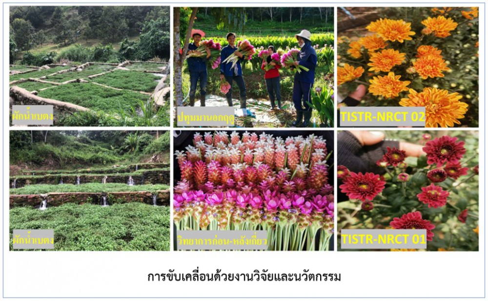 ด้าน ดร.รจนา ตั้งกุลบริบูรณ์ ผอ.ศูนย์เชี่ยวชาญนวัตกรรมเกษตรสร้างสรรค์ วว. กล่าวว่า การขับเคลื่อนด้วยงานวิจัยและนวัตกรรมในโครงการนวัตกรรมเกษตรสร้างสรรค์เพื่อการพัฒนากิจกรรมท่องเที่ยวชุมชนอย่างยั่งยืน ครอบคลุมการส่งเสริมและสนับสนุนกลุ่มเกษตรกร ผู้ประกอบการ SMEs ตลอดห่วงโซ่คุณค่า ได้แก่ การส่งเสริมการใช้เบญจมาศพันธุ์ใหม่/กล้าพันธุ์ปลอดโรค การส่งเสริมการผลิตไม้ดอกภายใต้ระบบเกษตรปลอดภัย