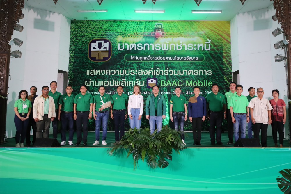 โดยมีลูกค้า ธ.ก.ส. ที่เข้าร่วมกิจกรรมกว่า 1,000 ราย โดยภายในงาน ธ.ก.ส. ได้จัดบูธให้บริการตรวจสอบสิทธิ์และแจ้งความประสงค์เข้าร่วมมาตรการผ่านแอปพลิเคชัน “BAAC Mobile” โดยสามารถแจ้งความประสงค์ได้ตั้งแต่วันที่ 1 ตุลาคม 2566 – 31 มกราคม 2567 นอกจากนี้ ยังมีบูธในการฟื้นฟูศักยภาพในการประกอบอาชีพ ภายใต้หลักการ “ตลาดนำ นวัตกรรมเสริม เพิ่มรายได้” พร้อมการเชื่อมโยงตลาดให้กับลูกค้าผ่านบริษัทฯ เอกชนที่ต้องการรับซื้อผลผลิตจากเกษตรกร เพื่อนำไปแปรรูปสินค้าจำหน่ายยังผู้บริโภค และการให้ข้อมูลการสนับสนุนสินเชื่อเสริมสภาพคล่องในการประกอบอาชีพและป้องกันปัญหาการก่อหนี้นอกระบบ วงเงินไม่เกิน 100,000 บาท เพื่อส่งเสริมให้เกษตรกรมีรายได้เพิ่มขึ้นในระหว่างการพักชำระหนี้และสามารถยืนได้อย่างแข็งแกร่งและมั่นคงหลังการพักชำระหนี้
