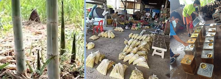 เจ้าของสวนไผ่บารมี บอกถึงการวิธีต้มหน่อไม้ด้วยว่า ใช้เวลาต้มนานประมาณ 40-45 นาทีความร้อน 100 องศา 1 เตาจะต้มหน่อไม้ได้ทีละ 500 กก. ปัจจุบันมี 2 เตาก็เท่ากับต้มได้ 1 ตัน/รอบ พอสุกหรือครบตามเวลากำหนดแล้วก็จะเอาหน่อไม้ที่ต้มขึ้นมาแล้วนำไปแช่เย็นเพื่อจะให้เปลือกเย็นตัวลงก่อน หลังจากนั้นก็จะเริ่มเข้าสู่กระบวนการปอกเปลือกและบรรจุลงถุง ๆ ละ 5 กก. ตามออร์เดอของแม่ค้าที่จะเข้ามารับ ซึ่งการต้มหน่อไม้ให้มีรสชาติที่อร่อยตรงตามตลาดต้องการ สำคัญคือต้องใช้ไฟในการต้มให้แรงเข้าไว้ อย่างน้อยต้องได้ 100 องศาขึ้นไป จึงจะทำให้หน่อไม้ต้มสุกอย่างทั่วถึง ข้อไม่แข็ง รสไม่ขมกินได้ทั้งหมดอร่อย ที่ตลาดต้องการ