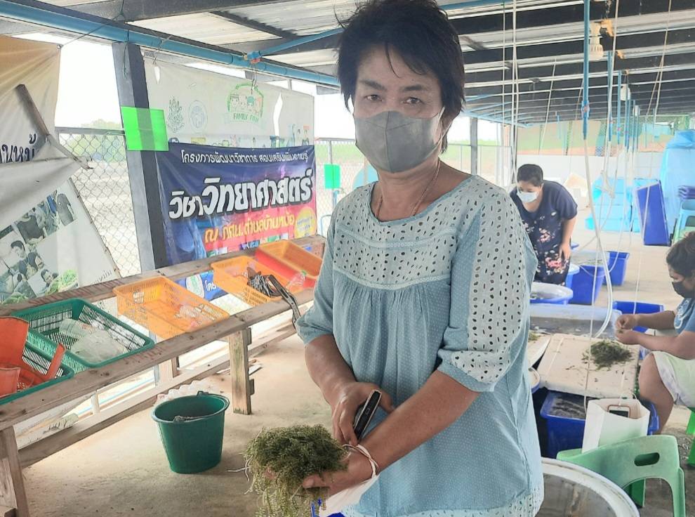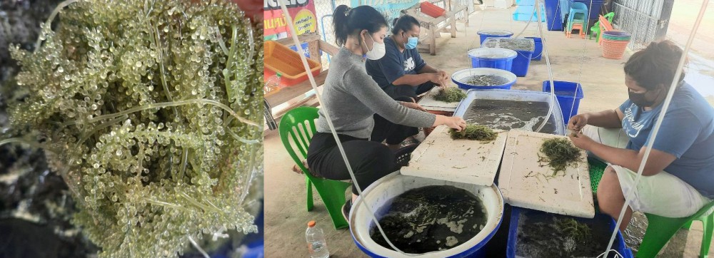 กว่า 8 ปีบนเส้นทางอาชีพเพาะเลี้ยงสาหร่ายทะเล “พวงองุ่น” บนพื้นที่ 81 ไร่ ของ “คมคาย มานิช” หรือ “เจ๊แหม่ม” เจ้าของ Family Farm (แฟมิลี่ฟาร์ม) ที่ตำบลแหลมผักเบี้ย อำเภอบ้านแหลม จังหวัดเพชรบุรี เป็นบทพิสูจน์ที่ชัดเจนแล้ว สาหร่ายพวงองุ่นเป็นสาหร่ายทะเลที่ทำเงินได้ดีอาชีพอย่างบนพื้นที่เดียวกัน สามารถผลิตสาหร่ายพวงองุ่นส่งทั่วประเทศเดือน 6 ตัน เผยเมนูเด้ม “ส้มตำ”