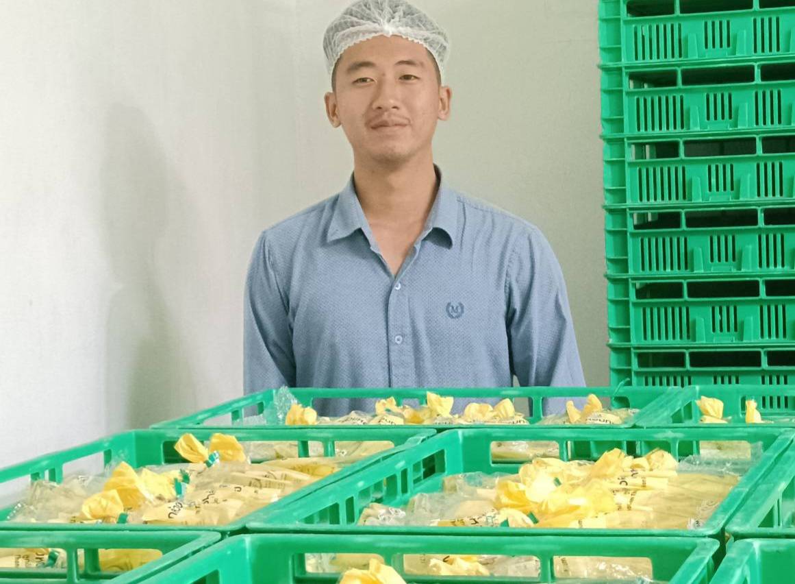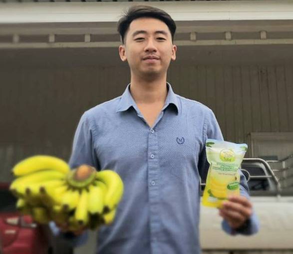 จากที่เกิดมาในครัวเกษตรกรมาตั้งแต่เด็ก ประกอบกับมีแนวคิดใหม่ๆตามประสาคนนุ่นใหม่ ทำให้วันนี้เด็กหน่มไฟแรงวัยเพียง 23 ปี “ธีรภัทร เดชจินดา” ทายาทเจ้าของสวน “ไร่ภักดี” ที่บ้านเสรีราษฎร์ ม.6 ต.ช่องแคบ อ.พบพระ จ.ตาก สามารถยกระดับของไร่จากเดิมปลูกพืชเศรษฐกิจมาหลายต่อหลายชนิด สุดท้ายจบปลูกกล้วยหอมทองส่งที่เซเว่น อีเลิฟเว่น ในพื้นที่ 200 ไร่ และนำผลผลิตที่ตกเกรดมาแปรรูปทำเป็นผลิตภัณ์กล้วยทอดสุญญากาศส่งขายเซเว่นฯทั่วประเทศตั้งแต่เดือนกันยายน 2566 ที่ผ่านมา