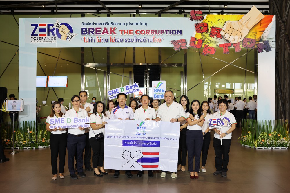 SME D Bank ร่วมกิจกรรมวันต่อต้านคอร์รัปชั นสากล (ประเทศไทย) พร้อมประกาศเจตจำนง บริหารองค์กรอย่างซื่อสัตย์ สุจริต โปร่งใส ตรวจสอบได้ ภายใต้แนวคิด “Zero Tolerance คนไทยไม่ทนต่อการทุจริต” BREAK THE CORRUPTION “ไม่ทำ ไม่ทน ไม่เฉย รวมไทยต้านโกง”