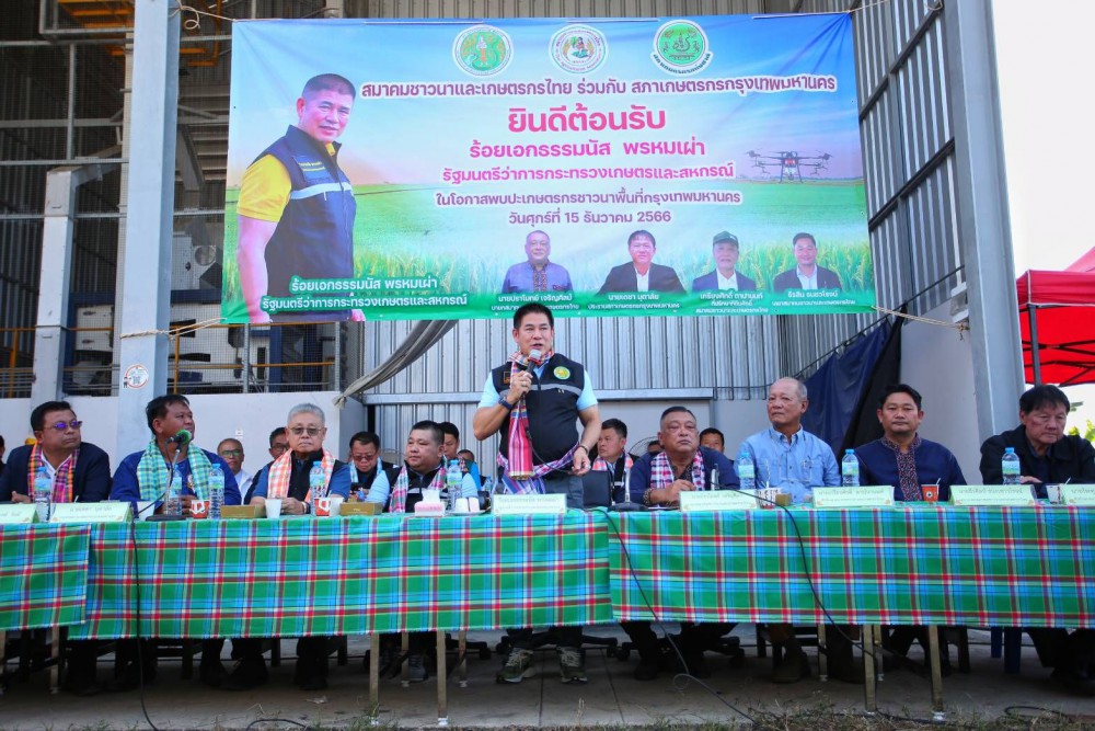 ร้อยเอก ธรรมนัส พรหมเผ่า รัฐมนตรีว่าการกระทรวงเกษตรและสหกรณ์ ลงพื้นที่พบปะและรับฟังปัญหาจากเกษตรกร สมาคมชาวนาและเกษตรกรไทย และสภาเกษตรกรกรุงเทพมหานคร พร้อมหว่านข้าวในแปลงนา โดยใช้โดรนเป็นนวัตกรรมใหม่ และปลูกต้นไม้มงคล ณ โรงสีข้าวชุมชน หมู่ 6 ก้าวหน้า คลองสิบสอง เขตหนองจอก กรุงเทพฯ