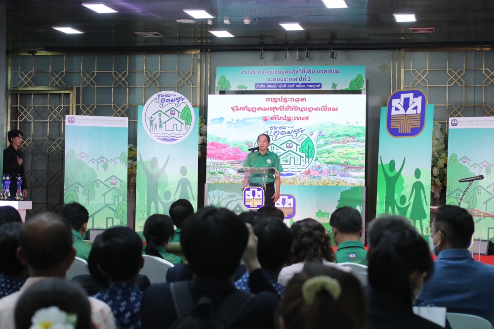 ทั้งนี้ ในปี 2566 มีชุมชนที่ผ่านการคัดเลือกเข้าแข่งขันในระดับประเทศ จำนวน 9 ชุมชนจาก 9 ฝ่ายกิจการสาขาภาค ได้แก่ ชุมชนบ้านหนองหมด จังหวัดเชียงราย ชุมชนบ้านคลองยาง จังหวัดสุโขทัย ชุมชนบ้านคำข่า จังหวัดสกลนคร ชุมชนบ้านเจริญสุข จังหวัดบุรีรัมย์ ชุมชนบ้านคลองหม่อนแช่ม จังหวัดนนทบุรี ชุมชนบ้านอ่างเตย จังหวัดฉะเชิงเทรา ชุมชนบ้านคลองขุด จังหวัดสมุทรสงคราม ชุมชนบ้านน้ำราด จังหวัดสุราษฎร์ธานี และชุมชนบ้านวังลุง จังหวัดนครศรีธรรมราช และชุมชนอุดมสุขที่ได้รับการคัดเลือก 3 อันดับแรกจะได้รับโล่เกียรติยศและเงินรางวัล ดังนี้ 1) รางวัลชนะเลิศ จำนวน 100,000 บาท 2) รางวัลรองชนะเลิศอันดับ 1 จำนวน 70,000 บาท และ 3) รางวัลรองชนะเลิศอันดับ 2 จำนวน 50,000 บาท