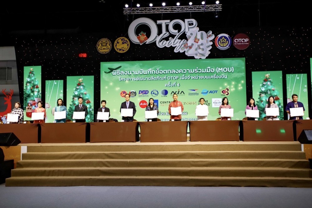 วว. ร่วมกับ 14 หน่วยงานภาคีภาครัฐและเอกชน ลงนาม MOU ว่าด้วย “โครงการพัฒนาผลิตภัณฑ์ OTOP เพื่อจำหน่ายบนเครื่องบิน ครั้งที่ 4” เพื่อสนับสนุนการพัฒนาการเพิ่มช่องทางการจำหน่าย และการประชาสัมพันธ์ผลิตภัณฑ์ หวังสร้างรายได้ให้แก่ผู้ผลิตในชุมชน สร้างภาพลักษณ์และคุณค่าของผลิตภัณฑ์ที่เกิดจากภูมิปัญญาไทยสู่สากล
