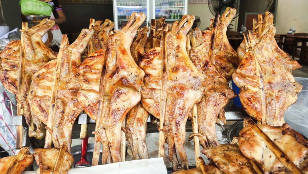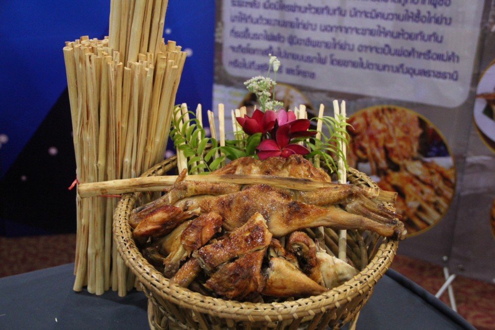กรมปศุสัตว์หนุนไก่ย่างไม้มะดันห้วยทับทันเป็นสินค้า GI จังหวัดศรีสะเกษ เผยเป็นอาชีพทำสืบทอดกันมามากกว่า 80 ปี ที่ปักหลักขายที่สถานีรถไฟห้วยทับทัน โดยใช้หอมแดงและกระเทียมที่ปลูกในพื้นที่ในการหมักจนซึมเข้าด้านในเนื้อไก่ และใช้ไม้มะดันป่าริมห้วยทับทันมาหนีบย่างไก่เนื่องจากคนห้วยทับทันคุ้นเคยกับไม้มะดันป่าเป็นอย่างดี
