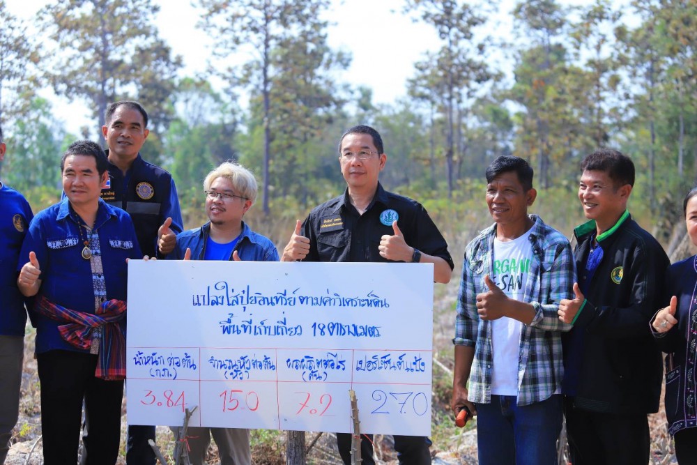 กรมส่งเสริมการเกษตร จัด Field Day ที่อุบลฯ เพื่อถ่ายทอดผลงานวิจัยการใช้ปุ๋ยอินทรีย์ตามค่าวิเคราะห์ดินสำหรับมันสำปะหลังอินทรีย์ เผยผลการดำเนินการในพื้นที่ 1 ไร่ ไดเปรียบเทียบกับการดำเนินการในรูปแบบเดิม พบว่าน้ำหนักต่อต้นเฉลี่ยจากเดิม 2.2 กิโลกรัม/ต้น เพิ่มขึ้นเป็น 3.84 กิโลกรัม/ต้น คิดเป็นร้อยละ 74.55 มีจำนวนหัวต่อต้นเฉลี่ยจากเดิม 13.2 หัว/ต้น เพิ่มขึ้นเป็น 15 หัว/ต้น ผลผลิตต่อไร่เฉลี่ยจากเดิม 4.6 ตัน/ไร่ เพิ่มขึ้นเป็น 7.2 ตัน/ไร่