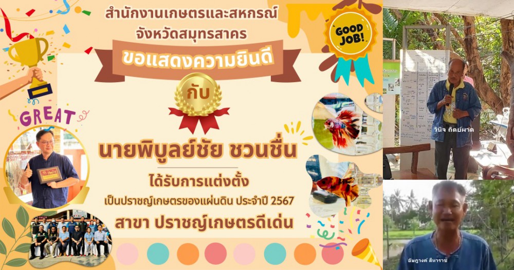 2) สาขาปราชญ์เกษตรดีเด่น ได้แก่ นายพิบูลย์ชัย ชวนชื่อ อ.กระทุ่มแบน จ.สมุทรสาคร
