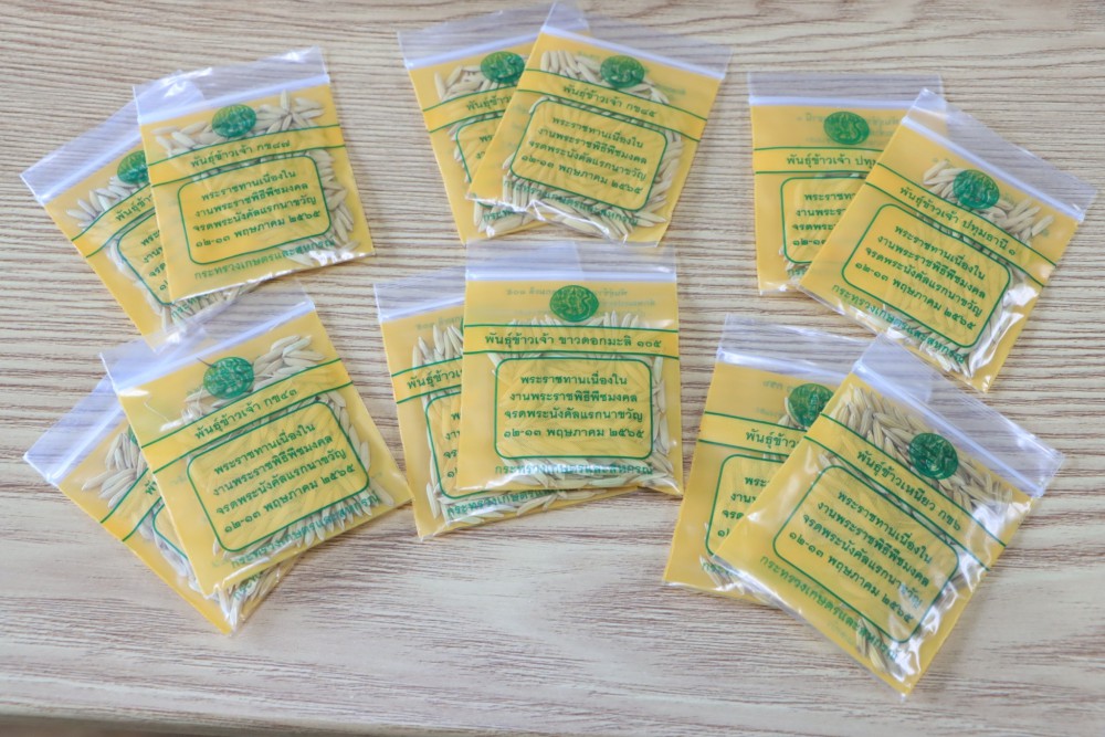 ขาวดอกมะลิ 105 เป็นข้าวเจ้าที่ทนแล้งได้ดีพอสมควร เมล็ดข้าวสารใส แกร่ง คุณภาพการสีดี คุณภาพการหุงต้มดี อ่อนนุ่ม มีกลิ่นหอม ทนต่อสภาพดินเปรี้ยว และดินเค็ม จำนวน 903 กิโลกรัม กข 43 เป็นข้าวเจ้า ไม่ไวต่อช่วงแสง คุณภาพของเมล็ดทางการหุงต้มรับประทาน ดี ข้าวสุกนุ่ม มีกลิ่นหอมอ่อน ค่อนข้างต้านทานต่อโรคไหม้และเพลี้ยกระโดดสีน้ำตาล จำนวน 300 กิโลกรัม กข 81 เป็นข้าวเจ้า ไม่ไวต่อช่วงแสง เมล็ดขนาดปานกลาง มีคุณสมบัติเหมาะสำหรับแปรรูปเป็นข้าวพองอบกรอบ จำนวน 200 กิโลกรัม กข 85 เป็นข้าวเจ้าพื้นแข็ง เป็นข้าวเจ้าไม่ไวต่อช่วงแสง ปลูกได้ทั้งนาปี และนาปรัง ทนต่อสภาพอากาศเย็น คุณภาพการสีดีมาก ท้องไข่น้อย จำนวน 200 กิโลกรัม