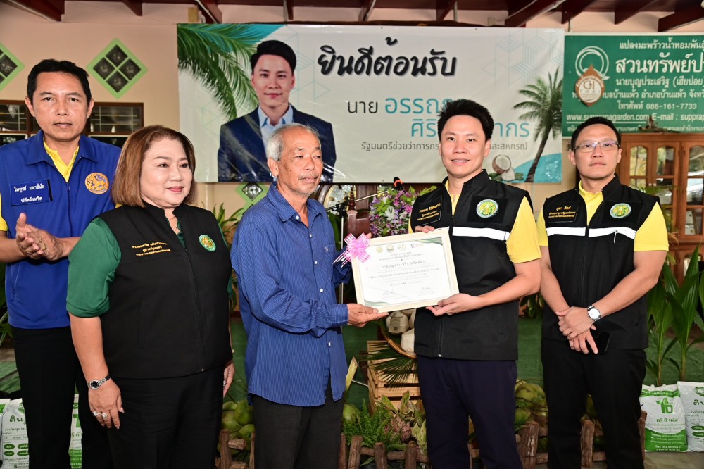 “อรรถกร” ลงพื้นที่มหาชัย ชู “สวนทรัพย์ประภา” เป็นแปลงต้นแบบ “สมุทรสาครโมเดล การผลิตมะพร้าวน้ำหอม GI สร้างรายได้สูง” และต้นแบบ “แม่พันธุ์มะพร้าวน้ำหอม GI บ้านแพ้ว” ยกระดับสินค้าเกษตร สร้างรายได้สูง พร้อมรับปากจะร่วมกับกระทรวงพาณิชย์ ถาคเอกชนวางแผนหาตลาดรองรับช่วงมีผลผลิตจำนวนมากออกสู่ตลาดมากช่วงเดือนตุลาคมถึงธันวาคม ตามนโยบาย ตลาดนำ นวัตกรรมเสริม เพิ่มรายได้ ของรัฐบาลต่อไป