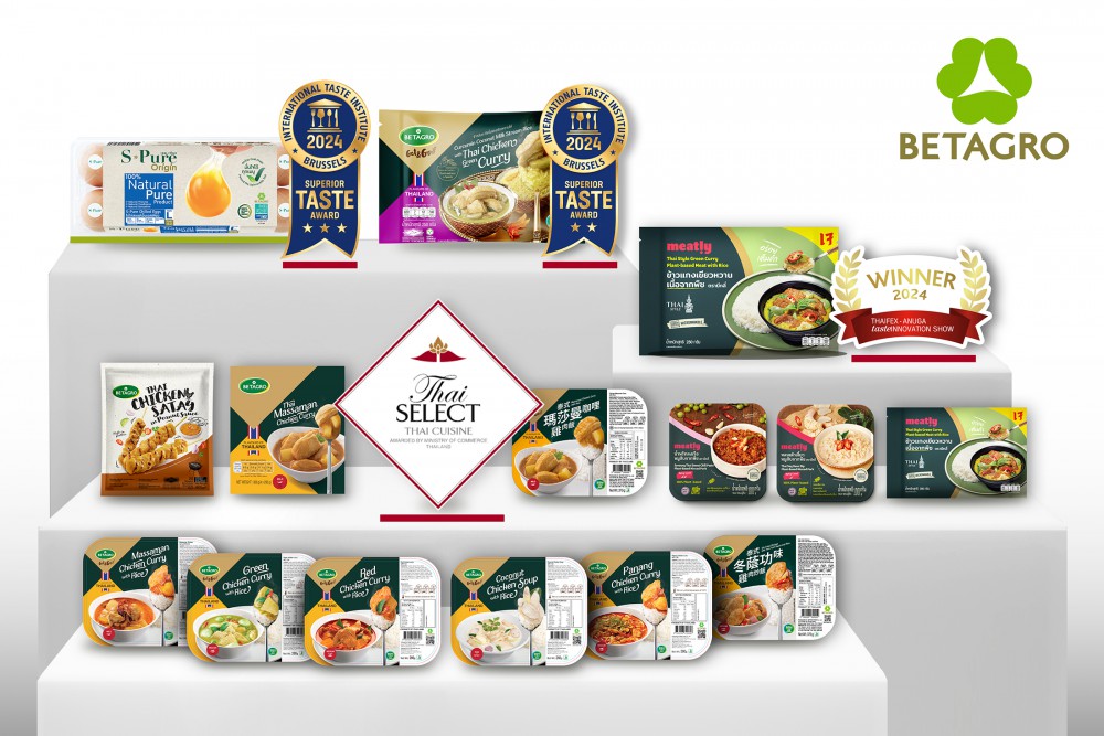 ในปีนี้ ผลิตภัณฑ์อาหารเบทาโกรได้รับ 3 รางวัลใหญ่ ได้แก่ 1) รางวัล Superior Taste Award 2024 โดย “ไข่ไก่สดแช่เย็นเอสเพียว (S-Pure Chilled Eggs)” ได้รับรางวัลในระดับ 3 ดาว และ “ข้าวมันกะทิขมิ้นแกงเขี ยวหวานไก่ Betagro” ได้รับรางวัลในระดับ 2 ดาว 2) รางวัลนวัตกรรมอาหาร THAIFEX – Anuga Taste Innovation Show 2024 จากเมนู “แกงเขียวหวานเนื้อชิ้นจากพื ชพร้อมทาน” แบรนด์ Meatly! และ 3) อาหารพร้อมทานภายใต้แบรนด์ “Betagro” และ “Meatly!” จำนวน 12 เมนูคว้า “ตราสัญลักษณ์ Thai Select ประจำปี 2567” อาทิ ข้าวแกงมัสมั่นไก่ ข้าวแกงเขียวหวานไก่ ไก่สะเต๊ะ หลนเต้าเจี้ยวหมูสับจากพืช น้ำพริกลงเรือหมูสับจากพืช เป็นต้น ซึ่งการันตีรสชาติอาหารยอดเยี่ ยมที่ได้มาตรฐานอาหารไทยอย่ างแท้จริง