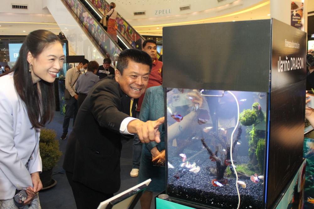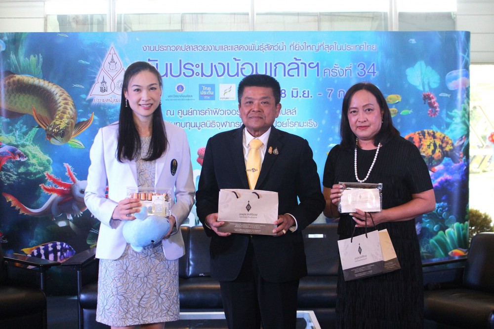 ส่วนนางณัฐรินทร์ พยุงวงศ์ รองกรรมการผู้จัดการสายการตลาดและพัฒนาธุรกิจ ศูนย์การค้าฟิวเจอร์พาร์ค และสเปลล์ กล่าวถึงความร่วมมือการจัดงานครั้งนี้ว่า งานวันประมงน้อมเกล้าฯ เป็นงานใหญ่ประจำปีที่ลูกค้า และประชาชนทั่วไป ต่างเฝ้ารอชมความงดงามของสัตว์น้ำหลากสายพันธุ์ ทั้งปลาที่นำมาร่วมประกวดและที่นำมาแสดง ซึ่งทางศูนย์การค้าฯ ได้จัดอย่างต่อเนื่องมาเป็นปีที่ 15 โดยปีนี้ทุ่มงบประมาณกว่า 10 ล้านบาท เนรมิตพื้นที่จัดงานทั้งหมดกว่า 7,000 ตารางเมตร บริเวณชั้นจี ศูนย์การค้าฟิวเจอร์พาร์คและสเปลล์ ให้เป็นอาณาจักรสัตว์น้ำที่ยิ่งใหญ่ภายใต้ธีม “Aquatic Arena : สนามแข่งขันประชันความงาม – ท้าประลองความแข็งแกร่งของแก๊งสัตว์น้ำ” นอกจากได้ชมความงามของสัตว์น้ำแล้ว ฟิวเจอร์พาร์คยังได้เสริมกิจกรรมให้กับสมาชิก F Member ได้ร่วมสนุกภายในงาน พร้อมรับฟรีของรางวัลมากมาย อาทิ