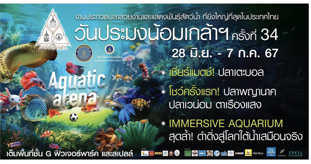 กรมประมง ร่วมกับ คณะแพทยศาสตร์ศิริราชพยาบาล ศูนย์การค้าฟิวเจอร์พาร์คและสเปลล์ หน่วยงานภาครัฐและเอกชน ร่วมจัดงาน “วันประมงน้อมเกล้าฯ ครั้งที่ 34 ” อย่างยิ่งใหญ่ ภายใต้แนวคิด “Aquatic Arena : สนามแข่งขันประชันความงาม – ท้าประลองความแข็งแกร่งของแก๊งสัตว์น้ำ” ระหว่างวันที่ 28 มิถุนายน ถึง 7 กรกฎาคม 2567 บนพื้นที่กว่า 7,000 ตร.ม. ทั่วบริเวณชั้น G ศูนย์การค้าฟิวเจอร์พาร์คและสเปลล์ เผยปีนี้นำเสนอสุดยอดนิทรรศการความรู้และการจัดแสดงพันธุ์สัตว์น้ำ ภายใต้คอนเซ็ปต์ Miracle Style with Aquatic Life ความอัศจรรย์ของสิ่งมีชีวิตใต้น้ำ ที่มีความหลากหลายและไลฟ์สไตล์ที่แตกต่าง แต่คงความงดงามตามธรรมชาติ พร้อมนำเสนอในรูปแบบ 9 Highlights และ 8 Styles อย่างจุใจ