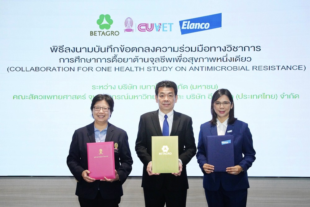 “บริษัท เบทาโกร จำกัด (มหาชน)” หรือ “BTG” บริษัทอาหารครบวงจรชั้ นนำของไทยที่มุ่งมั่นเพิ่มคุณค่ าชีวิตทุกคน ด้วยอาหารที่ดีกว่า เพื่อชีวิตที่ยั่งยืน โดย “นายสมศักดิ์ บุญลาภ” (ที่ 2 จากซ้าย) ประธานเจ้าหน้าที่ปฏิบัติการ กลุ่มปฏิบัติการผลิตปศุสัตว์ และโรงงาน ร่วมลงนามบันทึกข้อตกลงความร่ วมมือทางวิชาการการศึกษาการดื้ อยาต้านจุลชีพเพื่อสุขภาพหนึ่ งเดียว ร่วมกับ “คณะสัตวแพทยศาสตร์ จุฬาลงกรณ์มหาวิทยาลัย” โดย “ศ.สพ.ญ.ดร.สันนิภา สุรทัตต์” (ที่ 1 จากซ้าย) คณบดี และ “บริษัท อีแลนโค (ประเทศไทย) จำกัด” โดย “นางธารรัชต์ ธรรมสุวรรณ” (ที่ 3 จากซ้าย) กรรมการ ผู้อำนวยการบริหารฝ่ายการเงิน – Thailand, Vietnam & CLMเพื่อสร้างเครือข่ายวิจัยสำหรั บการศึกษาและติดตามสถานการณ์ การดื้อยาต้านจุลชีพ ตลอดจนแนวทางลดผลกระทบจากการใช้ ยาปฏิชีวนะ มุ่งยกระดับการผลิตปศุสัตว์ที่ ยั่งยืน ตลอดจนส่งเสริมแนวคิดสุขภาพหนึ่ งเดียว (One Health) ในการสร้างสุ ขภาวะและความเป็นอยู่ที่ดีให้ แก่คน สัตว์ และสิ่งแวดล้อม