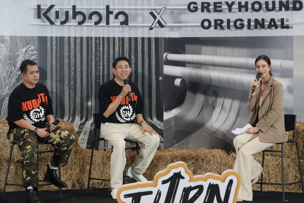 ดังนั้นจึงได้มองหาพันธมิตรที่มีมุมมองเดียวกัน โดยมีการแชร์ไอเดียกับ เกรฮาวด์ ออริจินัล แบรนด์คนไทยที่ออกแบบเสื้อผ้าสไตล์สตรีทแวร์ ได้อย่างโดดเด่นมีเอกลักษณ์เฉพาะตัว และให้ความสำคัญด้านความยั่งยืนมาอย่างต่อเนื่อง จนเกิดเป็นแคมเปญ KUBOTA x GREYHOUND ORIGINAL PRESENT “Turn waste to Agri-Wear” ถือเป็นการสร้างปรากฏการณ์ใหม่ที่ผนึกเอาภาคการเกษตรผนวกเข้ากับวงการแฟชั่น ซึ่งเชื่อว่าแฟชั่นจะเป็นสิ่งที่ทุกคนสามารถมีส่วนร่วมและเข้าถึงได้ง่าย