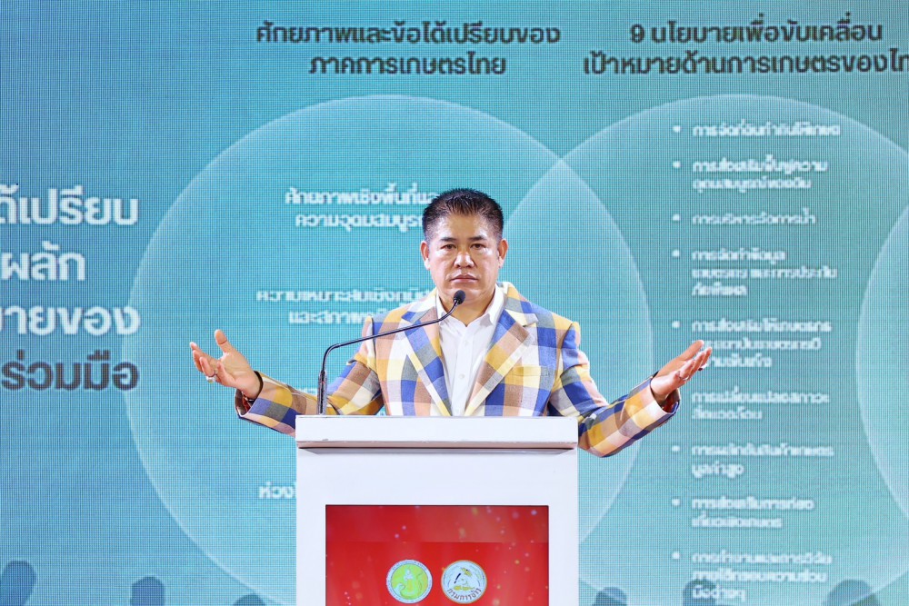 ร้อยเอก ธรรมนัส กล่าวว่า ภาคการเกษตรเป็นเรื่องของคนส่วนใหญ่ ซึ่งเชื่อมโยงไปสู่ระดับประเทศได้ในทุกมิติ ทั้งทางเศรษฐกิจ สังคม และสิ่งแวดล้อม ซึ่งประเทศไทยมีความมั่นคงด้านอาหาร และมีการจัดส่งอาหารส่งออกใน 1 ปี มูลค่ากว่า 1.3 ล้านล้านบาท แต่ยังคงประสบกับภัยทางธรรมชาติที่ไม่สามารถคาดเดาได้ ถือเป็นความท้าทายของภาคเกษตรที่ต้องปรับตัวใช้นวัตกรรมและเทคโนโลยีมาเพิ่มผลผลิตคุณภาพและเพิ่มมูลค่าสินค้าให้เกิดเกษตรมูลค่าสูง