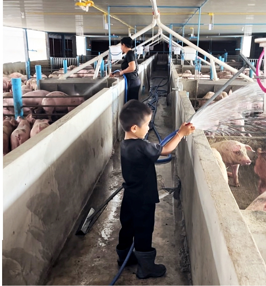 “เริ่มเลี้ยงหมูรุ่นแรกเข้าเลี้ ยงเมื่อเดือนกุมภาพันธ์ที่ผ่ านมา สิ้นเดือนกรกฎาคมนี้ ก็ถึงกำหนดจับหมูออก การเลี้ยงหมูมีประสิทธิภาพดี ตามเป้าหมายที่ตั้งไว้ เพราะจุดเริ่มต้นที่ดี ตั้งแต่การรับหมูจากฟาร์มต้ นทางที่มีสุขภาพดี เมื่อเรารับไม้ต่อมาเลี้ยงก็ให้ ความสำคัญกับการดูแลลูกหมูในช่ วงแรก มีการตรวจสุขภาพเป็นประจำ หากพบหมูป่วยจะแยกออกไปรักษาที่ คอกป่วยทันที เน้นการให้อาหารน้อยแต่บ่อยครั้ ง มีการกระตุ้นการกินอาหารด้ วยการผสมน้ำ ทำให้หมูกินอาหารได้ดี อัตราการเจริญเติบโตดี ไม่ป่วย ทำน้ำหนักได้ดี อัตราเสียหายปัจจุบันไม่ถึง 1%” อนุวัฒน์ เล่า