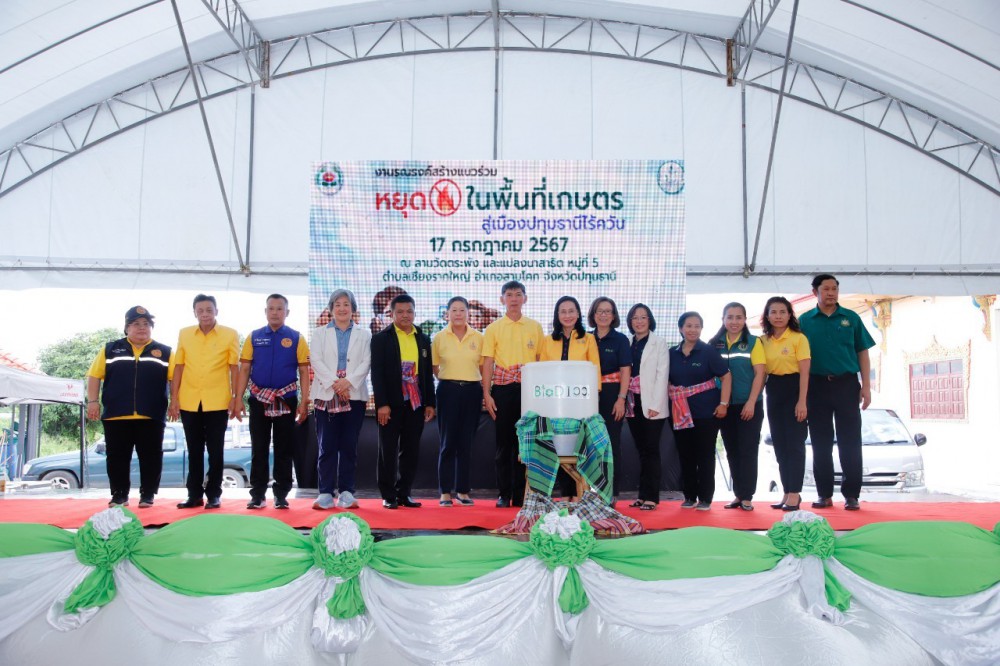 วันที่ 17 กรกฎาคม 2567 ดร.ชุติมา เอี่ยมโชติชวลิต ผู้ว่าการสถาบันวิจัยวิทยาศาสตร์และเทคโนโลยีแห่งประเทศไทย (วว.) กระทรวงการอุดมศึกษา วิทยาศาสตร์ วิจัยและนวัตกรรม (อว.) พร้อมด้วยนายคมสัน ญาณวัฒนา รองผู้ว่าราชการจังหวัดปทุมธานี และบริษัท อาปิโก ไฮเทค จำกัด (มหาชน) ร่วมเปิดตัว “กลุ่มจุลินทรีย์ BioD I วว. เพื่อย่อยสลายตอซังข้าว” มีประสิทธิภาพเพิ่มธาตุอาหารในแปลงนาและเป็นมิตรต่อสิ่งแวดล้อมอย่างยั่งยืน ณ ลานวัดตระพัง และแปลงนาสาธิต หมู่ที่ 5 ต.เชียงรากใหญ่ อ.สามโคก จ.ปทุมธานี พร้อมโชว์ “เทคโนโลยี วว. ยกระดับการเกษตรปทุมธานี” เนื่องใน “งานรณรงค์สร้างแนวร่วมหยุดเผาในพื้นที่เกษตร สู่เมืองปทุมธานีไร้ควัน” ซึ่งจังหวัดปทุมธานีจัดขึ้น ภายใต้โครงการตามแผนปฏิบัติราชการประจำปีงบประมาณ 2567 เพื่อขับเคลื่อนการดำเนินงานการแก้ไขปัญหาการเผาในพื้นที่เกษตรจังหวัดปทุมธานี