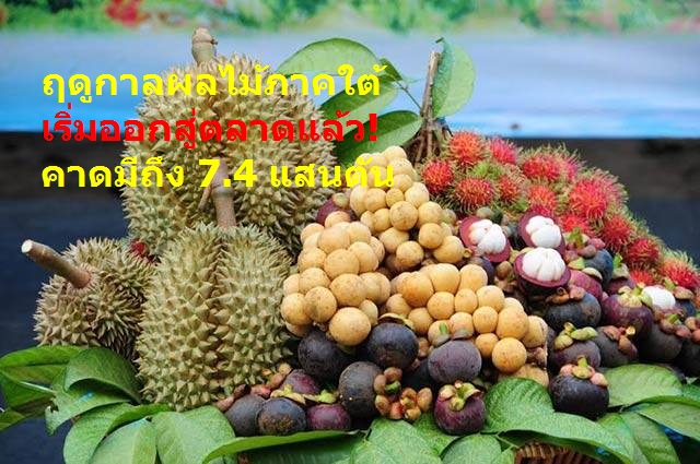 เกษตรกรภาคใต้แห่ปลูกไม้ผลเพิ่มขึ้นจากปีที่แล้วถึงร้อยละ 6.57 สำนักงานเศรษฐกิจการเกษตรประเมินข้อมูล 4 ชนิด “ทุเรียน-มังคุด-เงาะ-ลองกอง” มีผลผลิตรวม 7.4 แสนตัน เริ่มทยอยออกสู่ตลาดแล้วและจะมีปริมาณมากในเดือนสิงหาคม