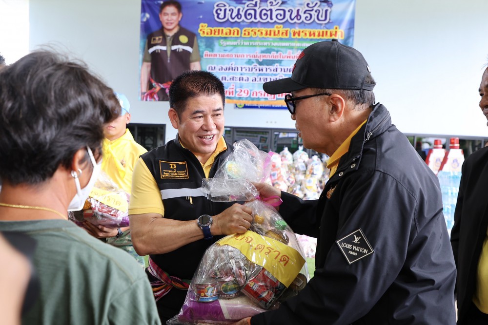 จากนั้น ร้อยเอก ธรรมนัสและคณะได้เดินทางต่อไปยัง องค์การบริหารส่วนตำบลสะตอ อำเภอเขาสมิง จังหวัดตราด เพื่อติดตามสถานการณ์น้ำและมอบถุงยังชีพให้แก่ผู้ประสบอุทกภัย จำนวน 1,000 ชุด และหญ้าอาหารสัตว์พระราชทาน เพื่อช่วยเหลือเกษตรกรในพื้นที่ประสบอุทกภัย พร้อมทั้งได้มอบหมายกรมชลประทาน โดยโครงการชลประทานตราดบูรณาการร่วมกับหน่วยงานราชการท้องถิ่นในการให้ความช่วยเหลือประชาชนผู้ประสบภัย พร้อมทั้งจัดเจ้าหน้าที่ติดตามสถานการณ์และเฝ้าระวังอย่างใกล้ชิด เพื่อการบรรเทาความเดือดร้อนของประชาชนในพื้นที่โดยเร็วที่สุด