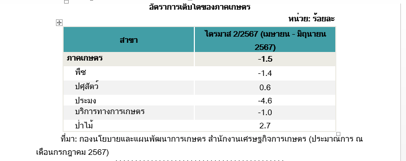 สำนักงานเศรษฐกิจการเกษตร เผยจีดีพี เกษตร ไตรมาส 2 หดตัว 1.5% เหตุจากเอลนีโญยังกระทบต่อเนื่อง และต้นทุนการผลิตที่ยังอยู่ในระดับสูง คาดทั้งปี ขยายตัว 0.2 – 1.2 %