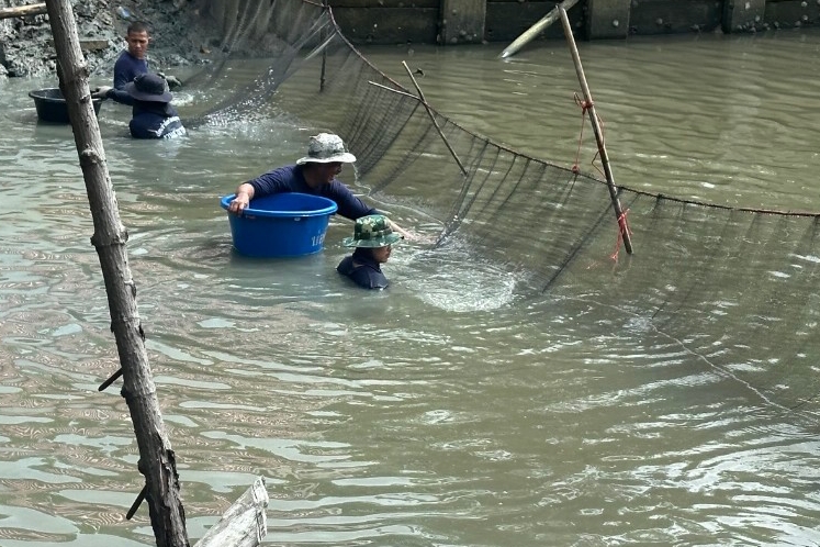 นายเผดิม รอดอินทร์ ประมงจังหวัดสมุทรสาคร นำตัวแทนจากภาคส่วนต่างๆ ภาครัฐ เอกชน และประชาชน ร่วม กิจกรรม “ลงแขกลงคลอง” ช่วยกันจับปลาหมอคางดำ ในแหล่งน้ำบริเวณศาลพันท้ายนรสิงห์ อำเภอเมือง จังหวัดสมุทรสาคร พร้อมรับมอบปลากะพงขาวขนาด 5 นิ้วจำนวน 5,000 ตัวจากตัวแทนบริษัท เจริญโภคภัณฑ์อาหาร จำกัด (มหาชน) หรือ ซีพีเอฟ และปล่อยลงแหล่งน้ำเพื่อช่วยควบคุมประชากรปลาหมอคางดำ ส่งผลให้ซีพีเอฟได้ร่วมสนับสนุนปลานักล่าเพื่อร่วมควบคุมปริมาณปลาหมอคางดำในแหล่งน้ำตามแนวทางกรมประมงไปแล้วรวม 54,000 ตัว รณรงค์และทำกิจกรรมกำจัดปลาหมอคางดำในพื้นที่พบการแพร่ระบาดของปลาหมอคางดำในทุกพื้นที่เพื่อเร่งกำจัดปลาหมอคางดำให้หมดไปคืนความสมดุลให้กับระบบนิเวศบ้านเรา