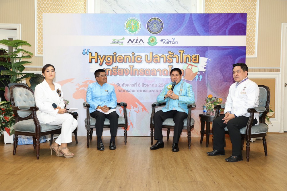 ขณะที่นายชุมพล แจ้งไพร ประธานอนุกรรมการคณะกรรมการขับเคลื่อนอุตสาหกรรมด้านอาหาร กล่าวเสริมด้วยว่า ปลาร้าเป็นอาหารพื้นเมืองที่ได้รับความนิยมในการบริโภคทั่วทุกภาคของประเทศไทย และตลาดส่งออกไปยังต่างประเทศมีการขยายตัวอย่างต่อเนื่อง ก่อนหน้านี้ตนได้มีการพัฒนาผลิตภัณฑ์ปลาร้า Hygienic ที่ถูกสุขลักษณะ โดยใช้ปลาน้ำจืดชนิดต่าง ๆ เป็นวัตถุดิบ ประกอบกับขณะนี้มีสถานการณ์การแพร่ระบาดของปลาหมอคางดำเกิดขึ้นในประเทศ ทำให้มีปริมาณปลาหมอคางดำที่ถูกจับขึ้นมาใช้ประโยชน์มาก ตนจึงเห็นโอกาสในวิกฤตด้วยการนำวัตถุดิบปลาหมอคางดำมาแปรรูปเป็นปลาร้า Hygienic เช่นเดียวกับปลาชนิดอื่น