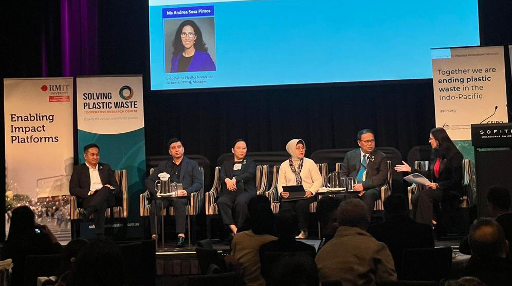 ดร.ชุติมา เอี่ยมโชติชวลิต ผู้ว่าการ สถาบันวิจัยวิทยาศาสตร์และเทคโนโลยีแห่งประเทศไทย (วว.) กระทรวงการอุดมศึกษา วิทยาศาสตร์ วิจัยและนวัตกรรม (อว.) และ ดร.เรวดี อนุวัฒนา ผู้เชี่ยวชาญวิจัย กลุ่มวิจัยและพัฒนาด้านพัฒนาอย่างอย่างยั่งยืน วว. หารือแนวทางจัดการขยะพลาสติกระดับอนุภูมิภาคอินโดแปซิฟิก ร่วมกับผู้เชี่ยวชาญประเทศพันธมิตรนานาชาติ ได้แก่ ออสเตรเลีย อินโดนีเซีย เวียดนาม ในการประชุม IPPIN Advisory Group Forum 2024 ในวันที่ 8 สิงหาคม 2567 ณ นครเมลเบิร์น ประเทศออสเตรเลีย