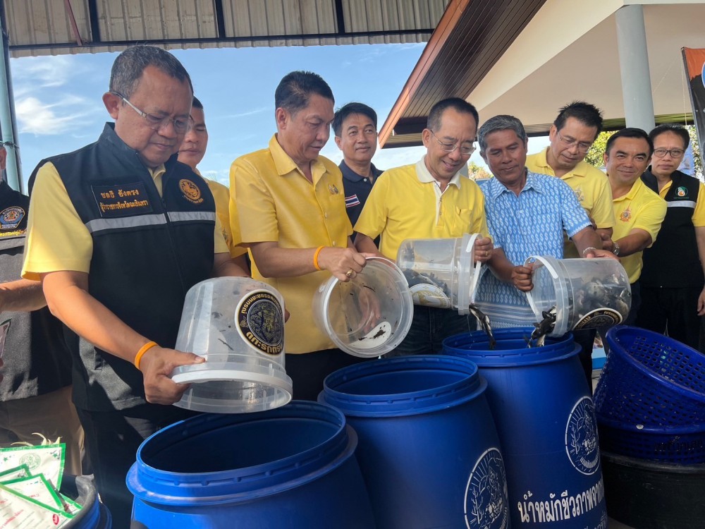 ด้านนายอดิศร์ กฤษณวงศ์ ผู้บริหารสูงสุดสายงานรัฐกิจและเอกชนสัมพันธ์ บริษัท เจริญโภคภัณฑ์อาหาร จำกัด (มหาชน) หรือ ซีพีเอฟ กล่าวว่า ซีพีเอฟผนึกพลังในองค์กรร่วมสนับสนุนกรมประมงในการกำจัดปลาหมอคางดำมาแล้ว 6 จังหวัด และวันนี้มอบแห อวน อุปกรณ์จับปลาให้ประมงฉะเชิงเทราใช้ในการจัดกิจกรรมจับปลา พร้อมทั้งสนับสนุนอาหารและน้ำดื่มให้กับผู้ร่วมงานลงแขก-ลงคลอง นอกจากนี้ ซีพีเอฟได้รับการประสานงานว่าโครงการผลิตน้ำหมักชีวภาพขาดแคลนถังบรรจุ บริษัทจึงได้ต่อยอดนำถังพลาสติกที่ใช้แล้วขนาดบรรจุ 1,000 ลิตรจากโรงงานผลิตอาหารสัตว์ซีพีเอฟ จำนวน 200 ใบมอบให้สถานีพัฒนาที่ดินในจังหวัดต่างๆ ใช้ผลิตน้ำหมักชีวภาพเพื่อส่งให้การยางฯ ต่อไป