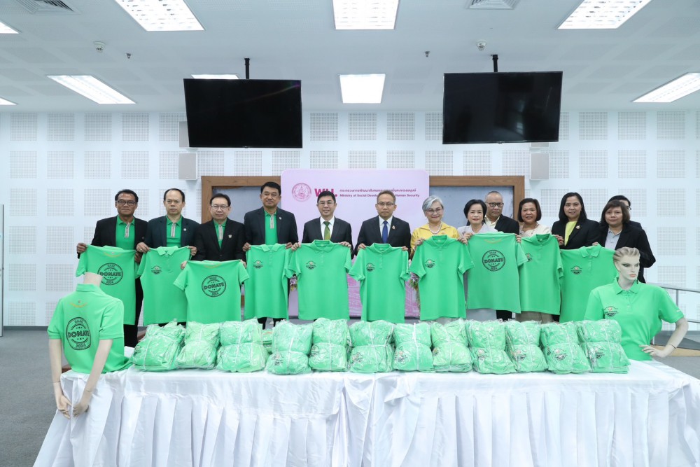 นายฉัตรชัย ศิริไล ผู้จัดการธนาคารเพื่อการเกษตรและสหกรณ์การเกษตร (ธ.ก.ส.) ส่งมอบเสื้อยืดตราสัญลักษณ์ธนาคาร จำนวน 2,000 ตัว จากโครงการเพื่อสังคม “ปันเสื้อ ปันสุข” ให้กับนายอนุกูล ปีดแก้ว ปลัดกระทรวงการพัฒนาสังคมและความมั่นคงของมนุษย์ (พม.) เพื่อนำไปส่งมอบให้แก่กลุ่มเปราะบาง อาทิ เด็ก คนพิการ ผู้สูงอายุ และผู้ด้อยโอกาสในสังคม ซึ่งเป็นกลุ่มเป้าหมายของกระทรวง พม.