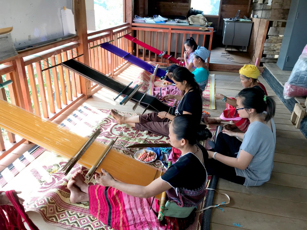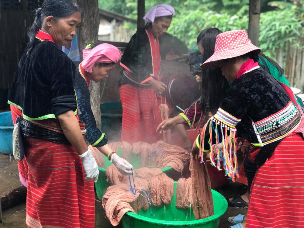 โดยนำเส้นด้ายเฮมพ์ผสมกับฝ้ายที่ปั่นแบบอุตสาหกรรมและนำมาให้กลุ่มทดลองทอเป็นผืนผ้าด้วยกี่เอว และได้ต่อยอดจากการย้อมสีธรรมชาติ ไปยังการอนุรักษ์ป่าที่มีไม้ที่ใช้ในการย้อม รวมถึงการพัฒนากระบวนการย้อมสีธรรมชาติที่ช่วยลดการเกิดมลพิษ ตลอดจนประสานงานด้านการตลาด เพื่อหาช่องทางตลาดสินค้าหัตถกรรมและส่งเสริมการจำหน่ายสินค้าออนไลน์และออฟไลน์ให้กว้างขวางมากยิ่งขึ้น