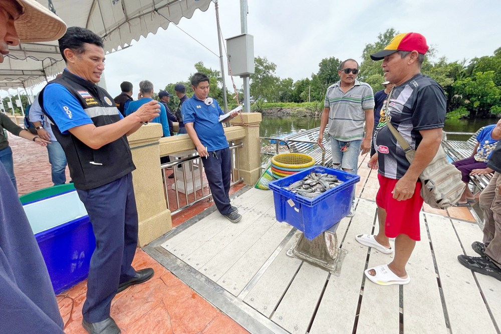 นายเผดิม รอดอินทร์ ประมงจังหวัดสมุทรสาคร เป็ นประธานในกิจกรรม “ลงแขกลงคลอง” ครั้งที่ 3 ที่บริเวณท่าน้ำหน้าวัดบางน้ำ วน ม.4 ต.บางโทรัด อ.เมือง จ.สมุทรสาคร โดยมี นายกู้เกียรติ ดิษแพ นายกอบต.บางโทรัด ผู้นำชุมชนตำบลบางโทรัด ผู้แทนจากหน่วยงานในสังกั ดกระทรวงเกษตรและสหกรณ์ ตำรวจน้ำ เรือนจำจังหวัดสมุทรสาคร พันธมิตรกำจัดปลาหมอคางดำ ตลอดจนกลุ่มเกษตรกรในพื้นที่ ในวันนี้มีกิจกรรมร่วมแรงกันจั บปลาด้วยเครื่องมือจับสัตว์น้ำ ชนิดต่างๆ การปล่อยปลานักล่า รวมถึงการสาธิตเมนู อาหารจากปลาหมอคางดำ โดยมีผู้แทนจากบริษัท เจริญโภคภัณฑ์อาหาร จำกัด (มหาชน) หรือซีพีเอฟร่วมกิ จกรรม มอบอุปกรณ์จับปลา และปลากะพง จำนวน 5,000 ตัว ให้แก่ประมงจังหวัดสมุทรสาครเพื่ อปล่อยลงสู่แหล่งน้ำกำจัดลู กปลาหมอคางดำ รวมถึงสนับสนุนอาหารและน้ำดื่ มแก่ผู้ร่วมงานครั้งนี้