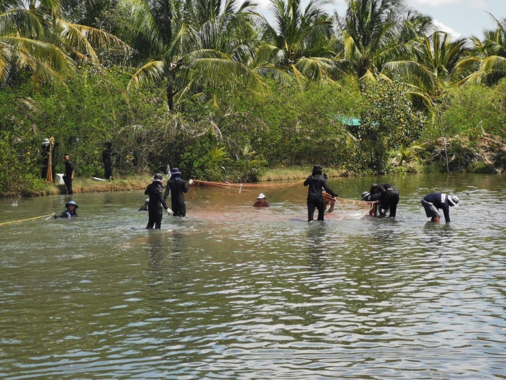 ซีพีเอฟ สนับสนุนกรมประมง และประมงจังหวัดนครศรีธรรมราช จัดกิจกรรม “ลงแขกลงคลอง” ครั้งที่ 3 ร่วมเปิดปฏิบัติการล่ าปลาหมอคางดำในพื้นที่ ตำบลเกาะเพชร อำเภอหัวไทร พร้อมทั้งสาธิตการนำปลาใช้ ประโยชน์ทั้งการทำพิซซ่าหน้าปลา และสอนน้องๆ นักเรียนทำน้ำหมักชีวภาพสำหรั บใช้กับแปลงผักอินทรีย์ ของโรงเรียน