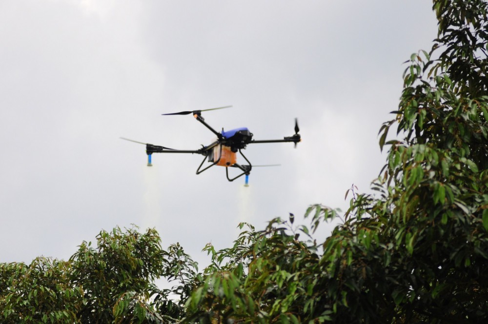 ทั้งนี้อากาศยานไร้คนขับ หรือ โดรน เป็นเทคโนโลยีหนึ่งที่ถูกนำมาใช้เป็นเครื่องมือทางการเกษตรของประเทศไทยและของโลกในปัจจุบันเพิ่มมากขึ้น เช่น การพ่นสารป้องกันกำจัดศัตรูพืช ฮอร์โมนพืช การหว่านปุ๋ยและเมล็ดพันธุ์ และการถ่ายภาพ สำหรับการใช้โดรนให้ถูกต้องและเกิดประสิทธิภาพสูงสุดในการพ่นสารป้องกันกำจัดศัตรูพืช โดยเปรียบเทียบการทำงานด้วยโดรนกับแรงงานคนต่อวัน สำหรับพื้นที่นา 100 – 200 ไร่ ในการพ่นสาร หากใช้โดรนพ่นสารป้องกันกำจัดศัตรูพืชใน 1 วัน จะใช้แรงงานเพียง 2 คนต่อ 100 ไร่ เมื่อเทียบกับแรงงานคนใน 1 วัน ต้องใช้ถึง 8-10 คนต่อ 100 ไร่ เป็นต้น