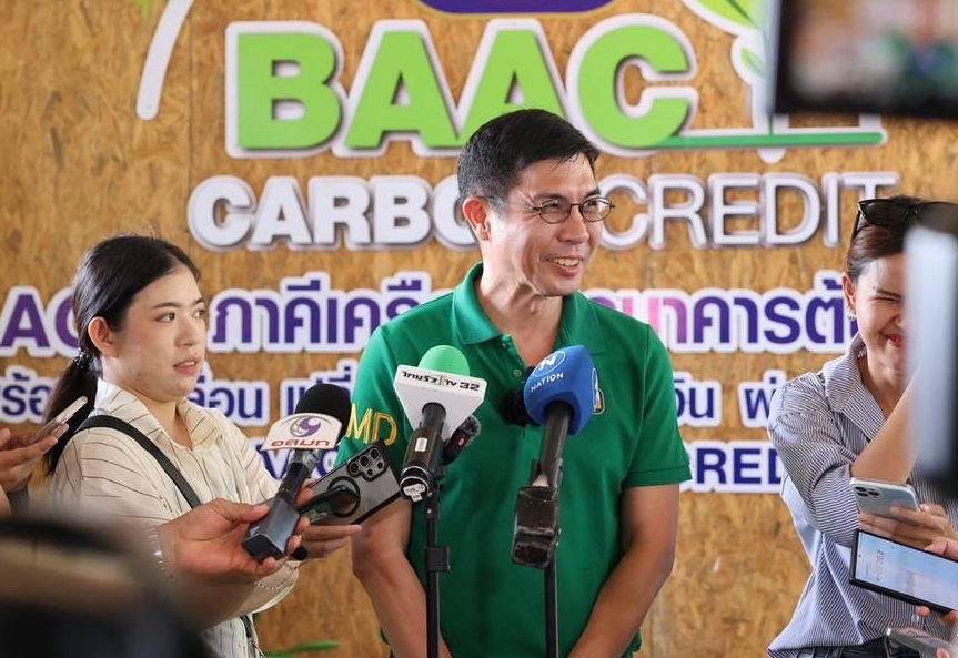 ในโอกาสนี้ ธ.ก.ส. ขอเชิญเกษตรกรและชุมชนธนาคารต้นไม้มาร่วมเปลี่ยนอากาศให้เป็นเงินกับโครงการ BAAC Carbon Credit และเชิญชวนหน่วยงานภาครัฐและเอกชนที่สนใจมาร่วมเป็นส่วนหนึ่งในการขับเคลื่อนภารกิจในการรักษาสิ่งแวดล้อม ที่นอกจากจะตอบโจทย์เป้าหมายภาคธุรกิจแล้ว ยังเป็นการสนับสนุนรายได้และให้กำลังใจชุมชนในการปลูกต้นไม้เพิ่มพื้นที่สีเขียว รวมถึงร่วมสร้างเศรษฐกิจที่เข้มแข็งและยั่งยืนให้กับประเทศชาติอีกด้วย ติดต่อสอบถามรายละเอียดเพิ่มเติมได้ที่ ฝ่ายพัฒนาลูกค้าและชุมชน ธ.ก.ส. สำนักงานใหญ่ 2346 ถนนพหลโยธิน แขวงเสนานิคม เขตจตุจักร กรุงเทพฯ 10900 หรือ Call Center 02 555 0555