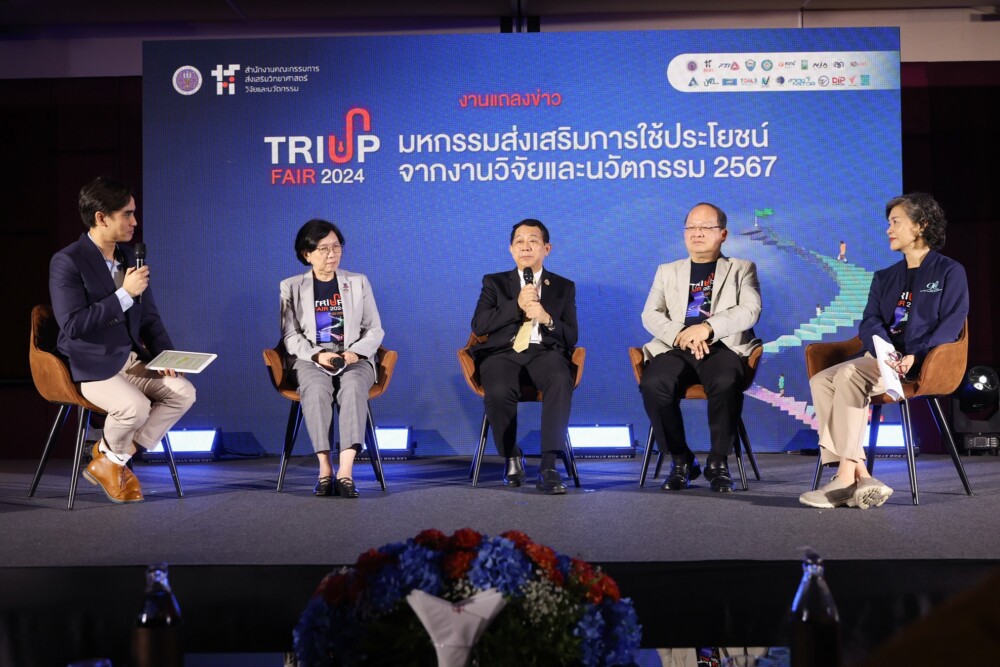 วันที่ 11 กันยายน 2567 รศ. ดร.ปัทมาวดี โพชนุกูล ผู้อำนวยการสำนักงานคณะกรรมการส่งเสริมวิทยาศาสตร์ วิจัยและนวัตกรรม (สกสว.) กล่าวว่า สกสว. สภาอุตสาหกรรมแห่งประเทศไทย หอการค้าไทยและสภาหอการค้าแห่งประเทศไทย และหน่วยงานภาคี ได้แก่ หน่วยบริหารและจัดการทุนวิจัย (PMU) มหาวิทยาลัย สถาบันวิจัย หน่วยงานภาครัฐที่กำกับดูแลหนุนเสริมผู้ประกอบการ ได้ร่วมกันจัดงาน TRIUP FAIR ต่อเนื่องเป็นปีที่ 3 เพื่อแสดงศักยภาพผลงานวิจัยและนวัตกรรมไทยและมุ่งเน้นการแก้ปัญหา ลดอุปสรรคการนำผลงานวิจัยและนวัตกรรมไปสร้างผลกระทบต่อเศรษฐกิจและสังคมของประเทศ
