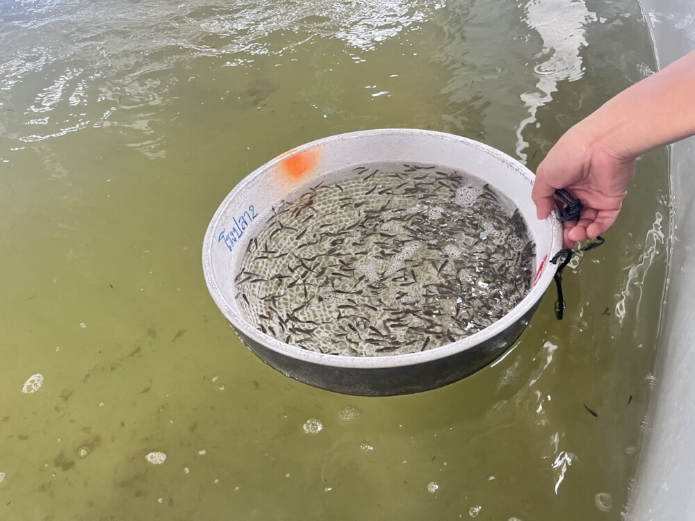 ด้านนายนิคม ละอองศิริวงศ์ ผู้อำนวยการศูนย์วิจัยและพัฒนาเทคโนโลยีและนวัตกรรมสัตว์น้ำชายฝั่ง กล่าวถึงวิธีการพัฒนาเทคนิคการเพาะเลี้ยงลูกปลากระบอกดำที่ดำเนินการภายในศูนย์ฯ ว่า เริ่มเอาจริงเอาจังตั้งแต่ปี 2561 โดยลูกพันธุ์ที่ได้จากพ่อแม่พันธุ์ในแต่ละรุ่นจะมีการเลี้ยงด้วยอาหารปลาทะเลวัยอ่อนในช่วงแรก จากนั้นจะค่อยๆปรับเปลี่ยนเป็นอาหารเม็ด เพื่อให้เกษตรกรที่ซื้อลูกพันธุ์ไปปล่อยในบ่อดิน สามารถให้อาหารเม็ดแกลูกปลาได้ทันที